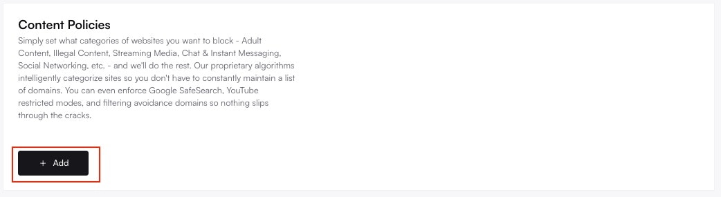 From your Altostrat Dashboard, go to Policies → Content Filtering. Click Add or + New to initiate the creation process.