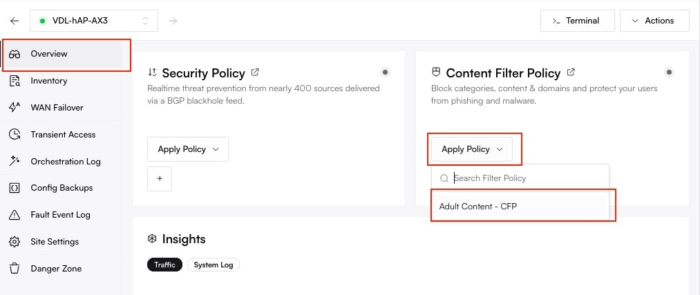• Combine with Other Security Layers: Content Filtering is one part of a layered security strategy. Complement it by enabling features like Security Essentials for threat intelligence feeds and firewall rules.