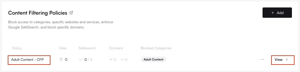 Navigate to Content Filtering Policies