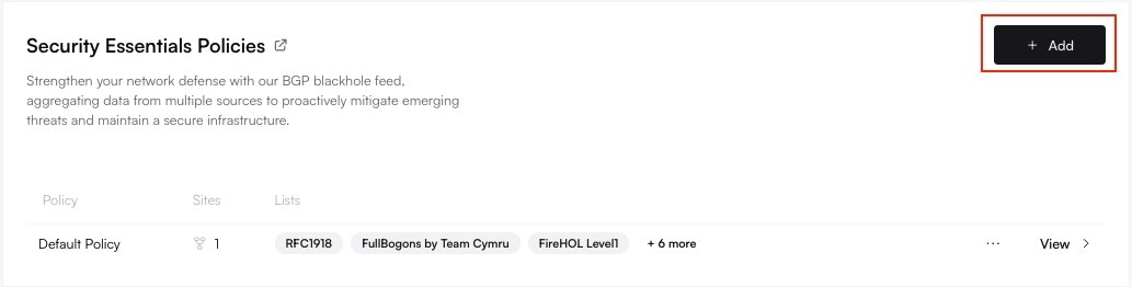 Click Add or + New. Enter a descriptive policy name (e.g., “Block Known Attackers”, “Critical Infrastructure Feeds”).