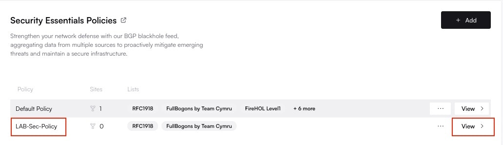 Click Save or Add to finalize the policy definition (Create BGP policy via API). To apply it to a site:
