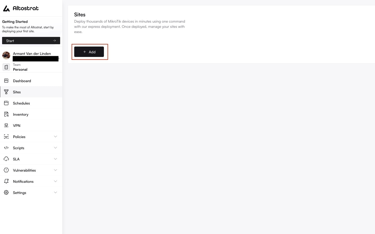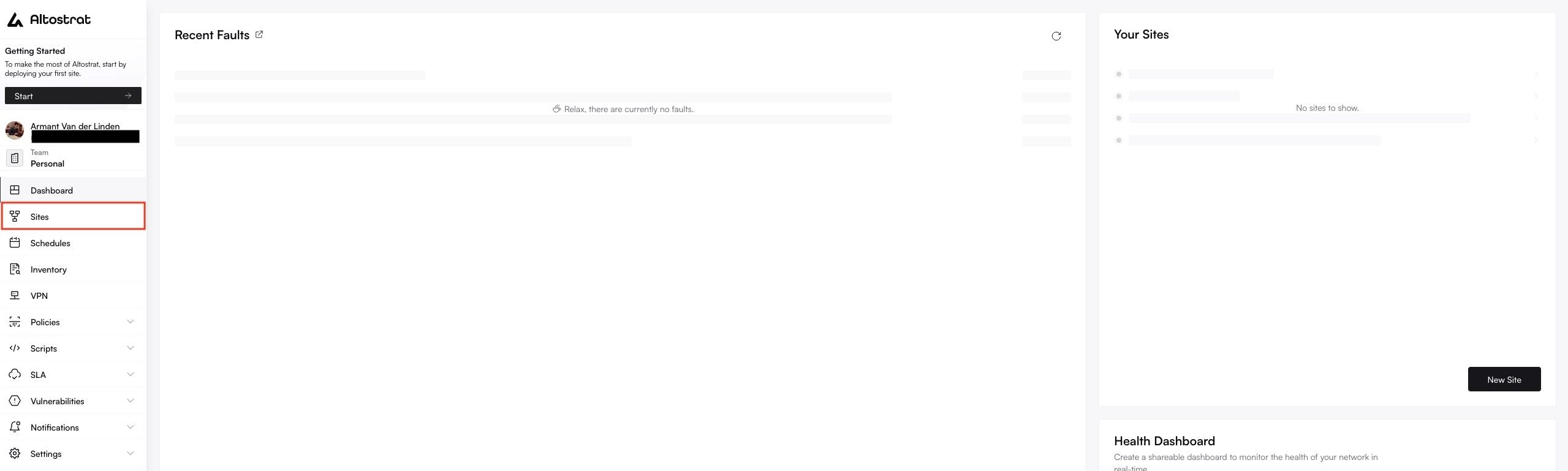 Creating a “Site” in Altostrat generates a unique identifier and a container for the device’s configuration,