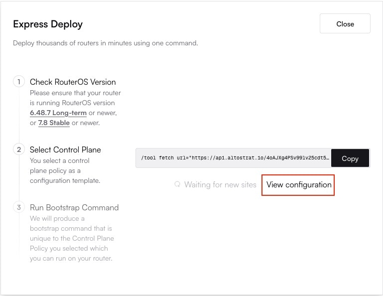 - Once the site is created, navigate to its overview page. Click the Add Router button (or similar) to start the “Express Deploy” process.