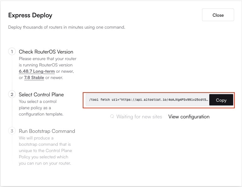 - Copy this entire command to your clipboard. It contains a secure token linking it to this specific site onboarding process.