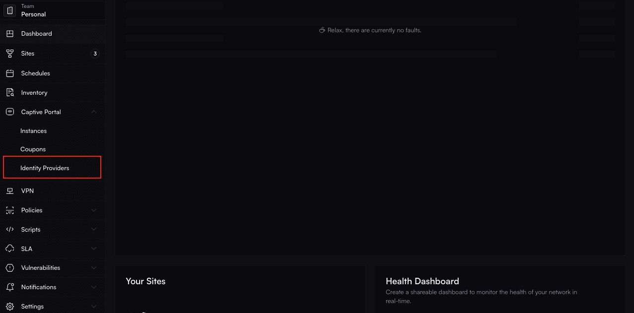 From the Altostrat dashboard, choose Captive portal → Identity Providers.