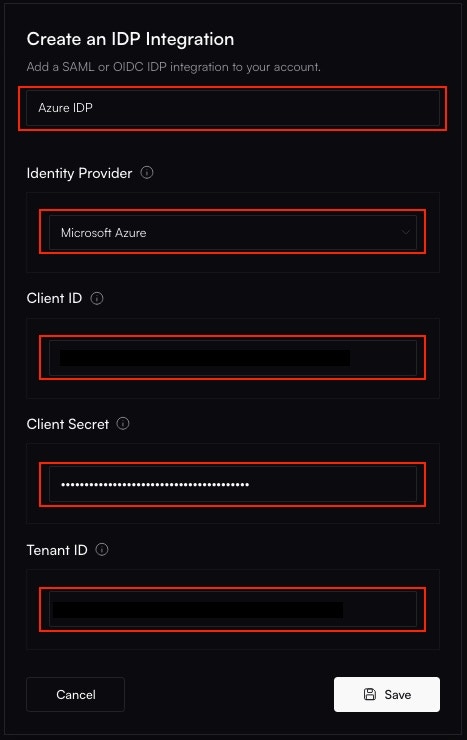 Fill in the Client ID (Application ID), Client Secret, and Tenant ID from your Azure