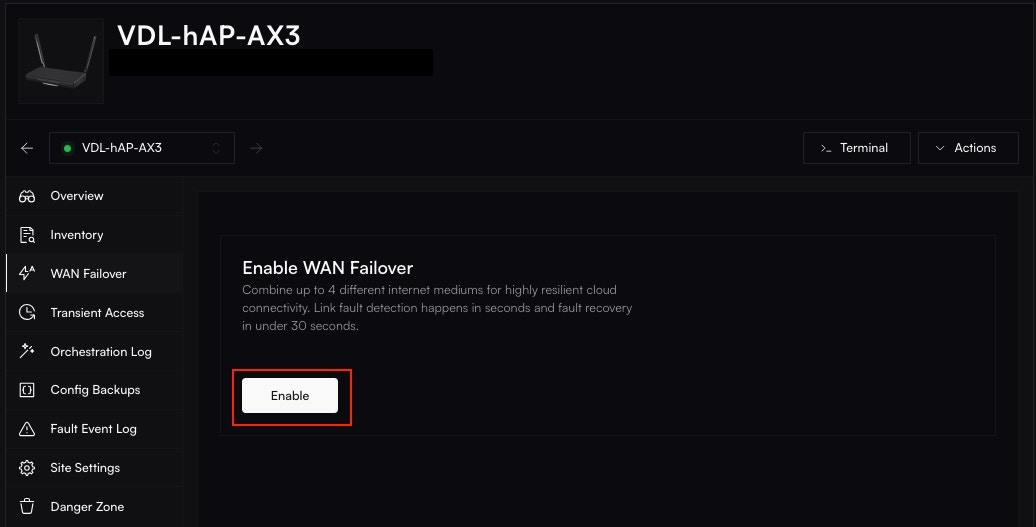 On the WAN Failover overview, click Enable or Add to activate the service.